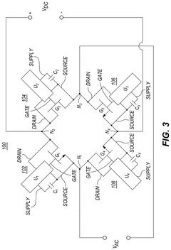 Technical Solution: Cambridge GaN Devices (CGD) has developed a unique ICeGaN™ (Integrated Circuit Enhancement-mode GaN) technology platform specifically addressing synchronous rectification challenges. Their approach integrates silicon CMOS control and protection circuitry directly with GaN power devices, creating an "all-in-one" solution that simplifies implementation. CGD's devices feature proprietary gate structures that enable standard silicon-compatible gate drive voltages (0-12V) while maintaining the high-speed switching capabilities of GaN. For reverse conduction, CGD implements an integrated protection mechanism that prevents excessive voltage stress during dead-time transitions, maintaining device reliability without external components. Their latest H-series devices achieve RDS(on) × Qg Figure of Merit values below 0.8 Ω·nC, representing a significant advancement over silicon MOSFETs. The integrated protection features include overvoltage, overcurrent, and overtemperature safeguards that enhance system robustness without external circuitry. CGD's devices demonstrate excellent dynamic RDS(on) stability, with less than 10% increase after 1000 hours of high-temperature, high-voltage stress testing.