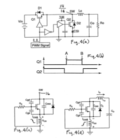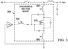 - The implementation of compensation inductance to offset parasitic packaging inductance effects, allowing for precise control of synchronous rectifier MOSFETs to minimize voltage drops and conduction losses by determining and applying compensation inductance values to semiconductor devices, thereby optimizing switching behavior.
