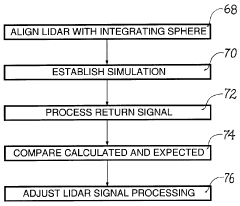 Comprehensive calibration protocols for metasurface LiDAR modules include both factory and field calibration procedures. Factory calibration establishes baseline performance parameters under controlled conditions, while field calibration addresses environmental factors and system-specific variations. These protocols may involve reference targets, automated calibration fixtures, and software algorithms that characterize and compensate for systematic errors. The combination of factory and field calibration ensures optimal performance throughout the lifecycle of metasurface LiDAR systems.Expand Specific Solutions