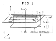 Technical Solution: HP has leveraged its expertise in precision fluid handling from inkjet printing technology to develop innovative microfluidic platforms for biochemical analysis. Their approach utilizes digital microfluidics where discrete droplets are manipulated on an array of electrodes using electrowetting principles. This technology enables programmable fluid routing without physical channels, offering unprecedented flexibility in protocol design. HP's microfluidic chips incorporate high-density electrode arrays with hydrophobic surface coatings and dielectric layers that enable precise control of droplet movement, splitting, and merging operations. Recent advancements include the integration of thermal control elements for on-chip PCR reactions, development of specialized surface treatments to minimize protein adsorption, and implementation of impedance-based sensing for droplet composition analysis. Their manufacturing approach leverages semiconductor fabrication techniques to produce highly reproducible electrode structures at scale. HP has also pioneered software control systems that allow users to design and execute complex biochemical protocols through intuitive graphical interfaces, making advanced microfluidic capabilities accessible to non-specialists.
