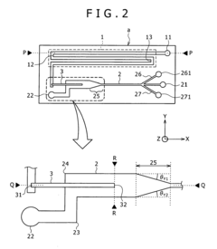 - Fluid control and manipulation mechanisms: Microfluidic chips incorporate various mechanisms for fluid control and manipulation, including valves, pumps, mixers, and droplet generators. These components enable precise control over fluid flow, mixing, separation, and reaction conditions within the microchannels. Advanced designs utilize electrokinetic, pneumatic, or capillary forces to drive and control fluid movement. The integration of these control mechanisms allows for complex fluid handling operations to be performed on a miniaturized scale with high precision and reproducibility.