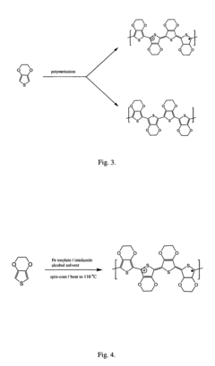 - A method involving the formation of multilayer conductive polymer films using poly(3,4-ethylenedioxythiophene) derivatives through a spin-coating and heating process, where multiple thin layers are sequentially polymerized on a substrate, optimizing conductivity and transparency by varying process parameters like spin speed, temperature, and molar ratios.