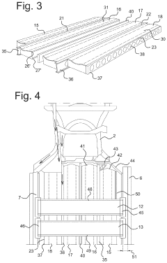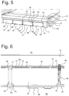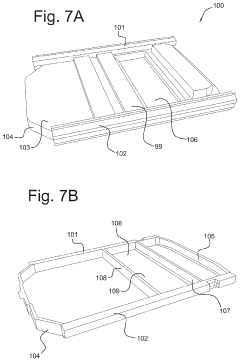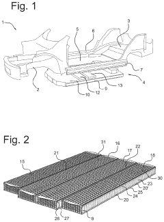 Technical Solution: BYD has developed an innovative structural battery technology called "Blade Battery" that serves dual purposes as both energy storage and structural reinforcement in EV platforms. The Blade Battery utilizes long, thin LFP (lithium iron phosphate) cells arranged in parallel configurations that contribute significantly to the vehicle's structural integrity. BYD's techno-economic analysis demonstrates that this approach reduces the need for additional structural components by approximately 15-20%, resulting in weight savings of 8-10% at the vehicle level. The company has engineered specialized cell-to-pack integration methods that maximize the structural contribution while maintaining optimal electrical performance. Their system achieves energy densities of approximately 140-150 Wh/kg while providing enhanced crash protection and structural rigidity. BYD's manufacturing process for structural batteries has been optimized for cost efficiency, with their analysis showing a 12-15% reduction in overall battery system costs compared to conventional designs with separate structural elements.