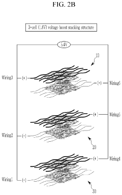 Technical Solution: Volta Structural Energy has pioneered multifunctional structural battery composites that integrate energy storage directly into the vehicle's structure. Their technology utilizes carbon fiber reinforced polymer (CFRP) as both the structural component and electrode substrate, with specialized electrolyte systems that maintain mechanical integrity while enabling ion transport. The company has developed a proprietary manufacturing process that allows for the creation of complex 3D structural battery components with energy densities approaching 75-100 Wh/kg at the cell level. Their latest generation technology incorporates silicon-enhanced anodes and high-nickel cathodes embedded within the structural matrix, enabling weight reductions of up to 15% in EV platforms while maintaining structural integrity. Volta's approach includes comprehensive battery management systems specifically designed for distributed structural battery arrays, addressing thermal management challenges unique to structural batteries.