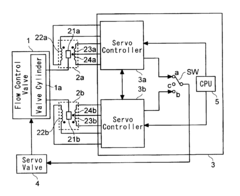 - A flow control device employing first and second linear variable differential transformers (LVDTs) with parallel secondary coils and servo controllers to monitor voltages, a switch selecting control signals based on normal performance ranges, ensuring accurate detection and fault tolerance by isolating faulty components.