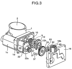 - A non-contact magnetic type throttle valve control apparatus is introduced, featuring a magnet on the throttle valve axis and a cover with hole elements that detect changes in magnetic flux, providing a long-lasting and accurate sensor system by minimizing magnetic interference and using a resin gear to prevent magnetic field leakage.
