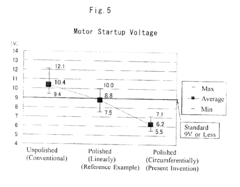 - A miniature motor design featuring a concentrically polished end face on the motor-casing-side bearing to reduce frictional resistance, combined with a manufacturing method that includes coaxially pressing a polishing rod against the bearing's end face to smooth the area where the rotor's washer abuts, ensuring efficient torque transmission without excessive power consumption.