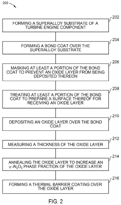 Metal components in turbine engines face severe corrosion and oxidation challenges due to exposure to combustion gases, moisture, and environmental contaminants. Protective coating systems, including aluminide coatings, MCrAlY overlays, and ceramic-based environmental barrier coatings, have been developed to mitigate these abiotic stress factors. These systems create protective oxide scales that prevent further degradation of the base metal, particularly in hot sections of the engine where oxidation rates accelerate.Expand Specific Solutions03 Mechanical stress and fatigue resistance improvements