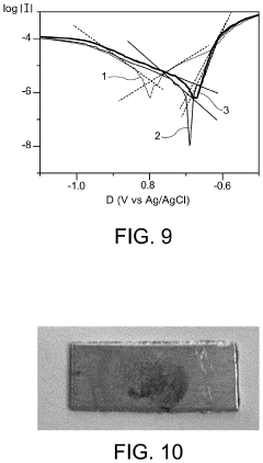 Technical Solution: BASF Coatings has developed a comprehensive protocol for testing conformal coatings in salt fog chambers that follows the ASTM B117 standard while incorporating proprietary enhancements. Their approach utilizes a multi-stage testing methodology that begins with sample preparation involving precise coating application techniques and controlled curing conditions. The testing protocol includes cyclic exposure patterns alternating between salt fog exposure (35°C with 5% NaCl solution) and controlled humidity/temperature conditions to simulate real-world environmental stresses. BASF employs advanced analytical techniques including 3D optical microscopy and electrochemical impedance spectroscopy to quantitatively assess coating performance beyond visual inspection. Their protocol specifically measures coating adhesion retention, dielectric strength maintenance, and corrosion creep resistance at predetermined intervals throughout the test duration, typically extending to 1,000+ hours for automotive and industrial applications.