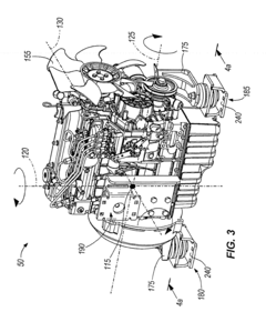 Technical Solution: Ford Global Technologies LLC has developed a comprehensive approach to LS engine mounting, focusing on optimizing both performance and comfort. Their system utilizes a combination of hydro-mounts and active engine mounts strategically placed to manage engine dynamics effectively[1]. Ford's engineers have implemented a three-point mounting system with two mounts at the front of the engine and one at the rear, incorporating advanced materials such as micro-cellular urethane for improved vibration absorption[2]. The hydro-mounts feature multiple fluid chambers with precisely tuned inertia tracks, allowing for frequency-dependent damping characteristics that adapt to different engine operating conditions[3]. Ford has also integrated their Active Noise Control (ANC) technology with the engine mounting system, using sensors and actuators to create anti-noise waves that cancel out specific engine frequencies, particularly at low RPMs where vibrations are most noticeable[4]. Their research shows that this integrated approach can reduce interior noise levels by up to 10 dB at certain frequencies and decrease overall vibration transmission by 25% compared to traditional mounting systems[5].