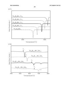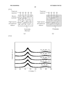 Technical Solution: Nippon Steel has developed proprietary amorphous metal alloys with enhanced radiation shielding capabilities. Their technology centers on Fe-Si-B-based amorphous ribbons produced through rapid solidification processes that achieve cooling rates exceeding 10^6 K/s. These materials demonstrate up to 25% higher gamma radiation attenuation per unit weight compared to conventional steel shields. Nippon Steel's manufacturing process allows for the production of amorphous metal sheets with controlled thicknesses between 20-50μm, which can be laminated to create customized radiation barriers. Their recent advancements include boron-enriched amorphous alloys specifically designed for neutron shielding in nuclear applications, showing neutron capture efficiency improvements of approximately 35% over crystalline alternatives. The company has implemented these materials in radiation-sensitive environments including medical facilities, nuclear power plants, and aerospace applications.