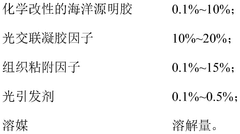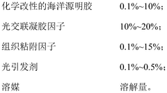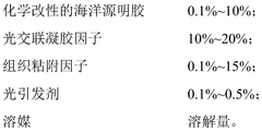 - An injectable hydrogel hemostatic agent based on marine gelatin is used, which contains chemically modified marine gelatin, photo-cross-linked gel factor, tissue adhesion factor and photoinitiator. It achieves rapid curing through ultraviolet irradiation and has strong tissue adhesion. Adhesion and mechanical properties, and has degradable properties.