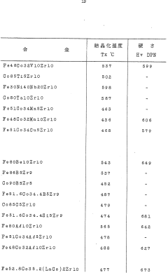 The cost-performance balance remains problematic for commercial applications. High-GFA compositions often rely on expensive elements like palladium, platinum, or rare earth metals. Attempts to substitute these with more economical alternatives frequently compromise the material's amorphous-forming capabilities or degrade critical performance properties such as corrosion resistance or mechanical strength.