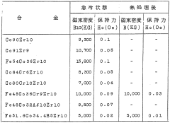 Technical Solution: VACUUMSCHMELZE (VAC) has developed proprietary cobalt-based amorphous alloys under their VITROVAC® brand, with compositions primarily in the Co-Fe-Si-B system. Their manufacturing process utilizes precision-controlled rapid solidification techniques to produce amorphous ribbons with thicknesses ranging from 15-35μm and widths up to 213mm. The flagship Co67Fe4Mo1.5Si16.5B11 composition exhibits exceptional magnetic properties including initial permeability exceeding 100,000, saturation induction of 0.55-0.58 T, and extremely low coercivity (0.5-2.0 A/m)[8]. VAC has pioneered specialized annealing treatments under magnetic fields that induce controlled magnetic anisotropy, enabling precise tailoring of magnetic properties for specific applications. Their recent innovations include multi-layer amorphous/nanocrystalline composite materials that combine the high saturation of nanocrystalline phases with the low losses of amorphous structures. VAC has also developed specialized surface passivation techniques that enhance the corrosion resistance of their amorphous alloys by creating nanoscale oxide layers that protect against environmental degradation while maintaining the core magnetic properties[9].
