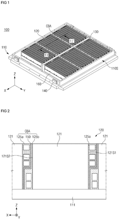 The structural design and materials used in battery packs significantly impact efficiency. Lightweight yet durable materials reduce overall weight while maintaining structural integrity. Innovative housing designs that optimize space utilization while providing adequate protection enhance energy density. The selection of conductive materials with low resistance for interconnects and terminals minimizes energy losses. Modular designs allow for easier maintenance and replacement of components, contributing to longer service life and sustained efficiency.Expand Specific Solutions05 Integration of power electronics and cooling systems