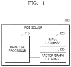 - A preconditioned conjugate gradient (PCG) solver is implemented within an electronic device, utilizing an image database and a factor graph database to perform re-localization and calculate six degrees of freedom-related components, optimizing matrix operations by calculating diagonal elements and reusing block elements, and using a shift register for data shifting and accumulation.