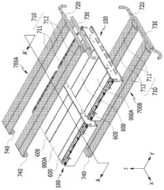 Effective thermal management is essential for battery pack resilience and longevity. Innovative cooling and heating systems help maintain optimal operating temperatures across all cells, preventing thermal runaway and ensuring consistent performance under various environmental conditions. These solutions include liquid cooling circuits, phase change materials, and intelligent thermal control systems that adapt to changing conditions, thereby enhancing the energy resilience of battery storage systems.Expand Specific Solutions03 Modular and Scalable Battery Pack Architectures