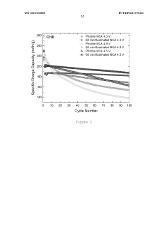 Strengths: Highly scalable coating processes compatible with existing manufacturing infrastructure; demonstrated improvements in cycle life (>40% increase) and capacity retention; cost-effective formulations using readily available materials. Weaknesses: Some coating compositions show performance degradation under extreme temperature conditions; certain formulations require precise environmental control during application; limited long-term stability data under accelerated aging conditions.