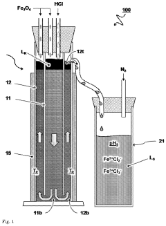 - A method involving an acidic solution reacting with an excess of mineral bulk material to form a stock solution with a desired Fe(II)/Fe(III) ratio, eliminating the need for separate ion sources and allowing for scalable production by minimizing gas entrainment and optimizing reaction conditions, such as using a continuous process with specific reactor configurations and acid concentrations.