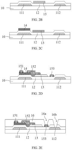 IGZO thin films are widely applied in display technologies such as OLED, LCD, and flexible displays. The high electron mobility and transparency of IGZO make it suitable for backplane transistors in high-resolution displays. Implementation strategies for integrating IGZO TFTs into display panels are described, including pixel circuit designs, addressing schemes, and compensation methods for display uniformity. The low off-current of IGZO TFTs enables low power consumption in display applications.Expand Specific Solutions05 IGZO thin film reliability and stability enhancement