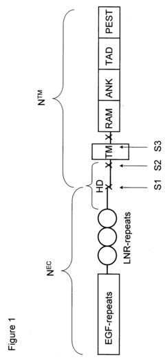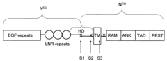 - Development of isolated peptides and antibodies targeting the LNR-HD domain with specific deletions or substitutions, which can be used to modulate Notch activity by binding to the native or mutated LNR-HD domain, thereby controlling Notch signaling pathways.