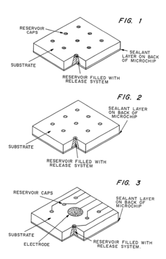 - Development of miniaturized microchip devices with controlled time and rate release systems using compression molding, injection molding, and microfabrication techniques, allowing for active or passive release of drugs through various materials and stimuli-responsive mechanisms.
