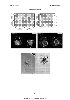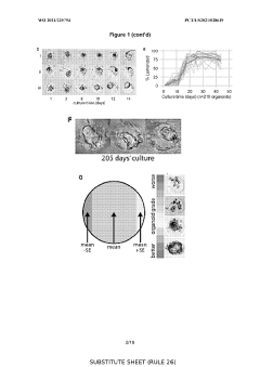 The composition of the extracellular matrix (ECM) is crucial for successful organoid culture. Various natural and synthetic ECM components, such as Matrigel, collagen, laminin, and hydrogels, provide the necessary physical support and biochemical cues for organoid formation. These matrices can be modified to control stiffness, porosity, and bioactive properties, influencing organoid development, differentiation, and functionality.Expand Specific Solutions04 Growth Factors and Signaling Molecules in Organoid Culture
