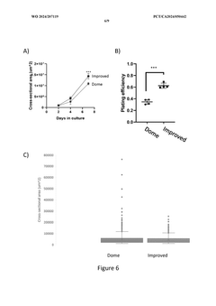 Technical Solution: STEMCELL Technologies has developed the IntestiCult™ Organoid Growth Medium system, a specialized culture platform for generating and maintaining intestinal organoids from various species including human, mouse, and pig. Their technology utilizes defined serum-free media formulations containing precise combinations of growth factors (including R-spondin, Noggin, and EGF) that support the expansion of LGR5+ intestinal stem cells and their differentiation into functional intestinal epithelium. The company has expanded their organoid platform to include specialized media for hepatic, pancreatic, and cerebral organoid generation, each optimized for tissue-specific development. Their systems incorporate proprietary extracellular matrix components that enhance organoid formation efficiency and structural organization. STEMCELL's platforms are designed for scalability, allowing researchers to transition from basic research to drug screening applications while maintaining consistent organoid characteristics across experiments.