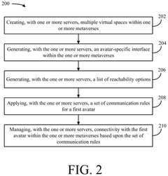 - Interconnected Multi-user VR Environments: Systems for creating interconnected virtual reality environments that allow multiple users to interact simultaneously across different physical locations. These platforms utilize advanced networking protocols to synchronize user experiences and maintain consistent virtual worlds. The technology enables collaborative work, social interactions, and shared experiences in virtual spaces with minimal latency and high fidelity.