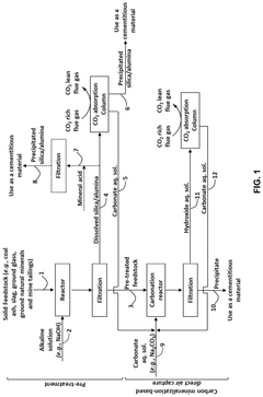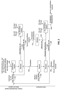 Advanced methods to accelerate and optimize the carbonation process in concrete, allowing for greater CO2 absorption. These techniques include controlled exposure to CO2-rich environments, pressure-assisted carbonation, and the use of specific additives that promote carbon uptake. The enhanced carbonation not only contributes to carbon negativity but also improves concrete strength and reduces permeability.Expand Specific Solutions05 Industrial waste utilization for carbon-negative concrete