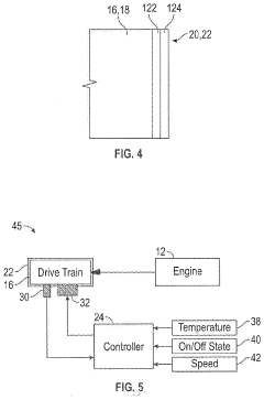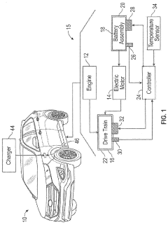 - Incorporating a thermally active material with variable thermal conductivity, actuated by an electric or mechanical mechanism, and controlled by a sensor and controller to adjust thermal conductivity based on vehicle operating conditions, ensuring heat transfer within predefined limits.