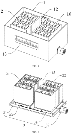 Current lithium-ion battery thermal management systems (BTMS) employ various cooling strategies, each with limitations. Air cooling systems, while simple and cost-effective, struggle with cooling efficiency and temperature uniformity across large battery packs. Liquid cooling offers superior heat transfer but introduces complexity, weight, and potential leakage concerns. Phase change materials provide passive thermal regulation but face challenges in complete regeneration and long-term stability.