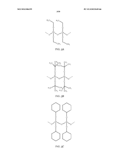 Implementing cross-linking mechanisms within photoresist polymers can dramatically improve their thermal stability. These mechanisms can be activated during post-exposure baking or other processing steps, creating a three-dimensional network structure that resists deformation at high temperatures. The cross-linked structure prevents polymer chain movement and increases the overall rigidity of the photoresist film, resulting in enhanced pattern stability during subsequent high-temperature processing steps.Expand Specific Solutions04 Copolymer and blend formulations for improved stability