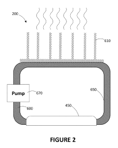 Technical Solution: Toyota has developed a comprehensive waste heat recovery system using advanced thermoelectric materials that can be integrated into their hybrid vehicle powertrains. Their approach combines skutterudite-based materials for high-temperature applications (600-700°C) near the exhaust manifold and bismuth-telluride compounds for lower temperature regions (200-300°C). Toyota's system architecture employs a cascaded design that optimizes energy capture across the temperature gradient, achieving conversion efficiencies of up to 7-9% in real-world driving conditions. The company has also pioneered manufacturing techniques that reduce the reliance on rare earth elements, utilizing magnesium silicide and higher manganese silicides as alternative thermoelectric materials. Toyota's latest generation TEGs incorporate nano-structured interfaces that reduce thermal boundary resistance, improving overall system performance by approximately 15% compared to their previous designs.
