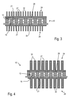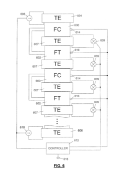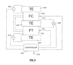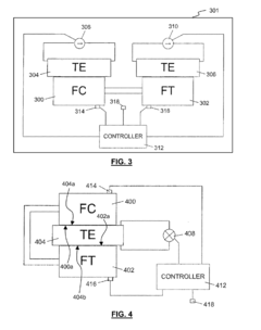 Technical Solution: Laird Technologies has pioneered a comprehensive thermoelectric module portfolio specifically designed for industrial energy applications. Their patented Tunnel Series™ modules incorporate advanced semiconductor materials with optimized thermal interfaces that maximize heat transfer efficiency. Laird's innovations include specialized ceramic substrates with enhanced mechanical strength and thermal conductivity, allowing their modules to withstand harsh industrial environments. Their PowerCycling™ technology addresses thermal fatigue issues through proprietary interconnect designs that accommodate thermal expansion differences between materials. Laird has also developed hybrid thermoelectric systems that combine waste heat recovery with active cooling capabilities, enabling dual-function applications in industrial settings. Their modules feature power densities up to 14W/cm² and can operate effectively in temperature differentials ranging from 20°C to 200°C, with specialized high-temperature variants for specific industrial applications.