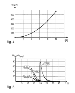 - A current sensor that measures the temperature difference between the resistance element and connection parts using thermoelements, generating a thermoelectric voltage to derive the electrical current, with a thermopile arrangement that allows for low heat transfer resistance and optional evaluation of temporal changes in temperature difference for slower response times, and integrates with a voltage measurement unit for redundant current measurement.