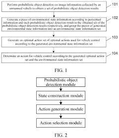 - A method that performs probabilistic object detection on image information from unmanned vehicles, generates environmental state information, and determines vehicle control actions using a hybrid decision-making framework that considers uncertainty, ensuring safety by accounting for potential inaccuracies in perception results.