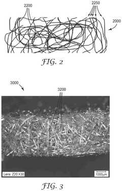 Technical Solution: Samsung SDI has developed advanced thermal interface materials specifically designed for high-voltage battery packs that utilize a composite structure combining silicone-based polymers with ceramic fillers. Their proprietary TIM solution employs a gradient structure where the material composition changes across its thickness, providing optimal electrical isolation near the battery cells while maximizing thermal conductivity near the cooling system. This approach achieves thermal conductivity values of 3-5 W/m·K while maintaining dielectric strength exceeding 20 kV/mm. Samsung's TIM technology incorporates nano-scale boron nitride particles dispersed in a flexible silicone matrix, allowing for compression under assembly pressure to minimize thermal contact resistance while maintaining shape recovery properties to accommodate battery expansion during cycling.