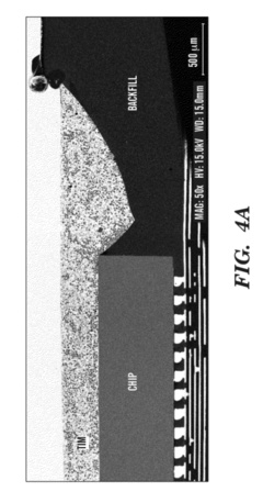 Technical Solution: Intel has developed advanced TIM solutions focusing on the balance between thermal resistance and mechanical stress in semiconductor packaging. Their approach includes phase-change materials (PCMs) that optimize thermal conductivity while minimizing mechanical stress during thermal cycling. Intel's research has led to the development of indium-based TIMs that provide excellent wetting properties and thermal conductivity of approximately 86 W/mK. They've implemented a systematic optimization methodology that considers both the TIM thickness and composition, using finite element analysis to model the stress distribution across the chip-package interface. Intel's solutions incorporate polymer matrix composites with tailored filler concentrations to achieve the optimal balance between thermal performance and mechanical reliability in high-performance computing applications.