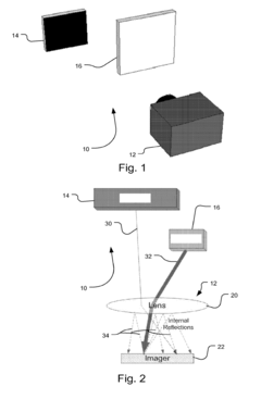 Stray light can significantly degrade ToF measurement accuracy by introducing noise and false signals. Suppression techniques include physical baffles, light traps, and specialized coatings that absorb unwanted light. Advanced designs incorporate optical isolators, spectral filters, and structured light patterns that help distinguish between intended signal returns and stray light artifacts. These mechanisms are crucial for maintaining measurement precision, especially in challenging environments with multiple reflective surfaces or ambient light interference.Expand Specific Solutions04 Integrated optical solutions for ToF performance optimization