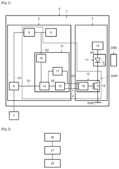 Technical Solution: Sony Semiconductor Solutions has developed advanced Time-of-Flight (ToF) sensor technology addressing timing challenges through innovative hardware and signal processing approaches. Their DepthSense™ ToF sensors incorporate high-precision timing circuits with temperature-stabilized oscillators achieving stability of ±2ppm across the operational temperature range. Sony's solution features a multi-phase modulation technique that enables robust performance even under varying ambient light conditions. Their sensors employ a proprietary clock distribution architecture that minimizes skew between different parts of the sensor array, ensuring uniform timing across the entire sensing surface. Sony has also implemented advanced phase-locked loop (PLL) circuits that maintain synchronization between the illumination source and sensor, compensating for thermal drift and aging effects[4][5]. Their latest generation incorporates on-chip processing capabilities that perform real-time calibration and error correction, maintaining timing accuracy throughout the sensor's operational lifetime.