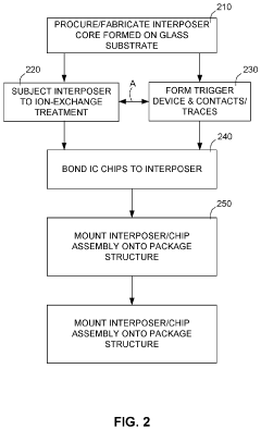 - A transient electronic device using a glass-based interposer with an ion-exchange treated substrate that fractures upon a trigger signal, causing the IC die to powderize simultaneously, providing rapid and complete destruction compatible with existing IC fabrication techniques.