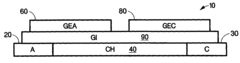 - Transparent electrode materials and structures: Transparent electrodes are essential components of transparent transistors. Materials such as indium tin oxide (ITO), graphene, silver nanowires, and other conductive transparent materials are used to create the gate, source, and drain electrodes of transparent transistors. The structure and composition of these electrodes significantly impact both the electrical performance and optical transparency of the transistor devices.