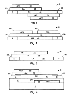 Various techniques have been developed to enhance the transparency of transistor components. These include optimizing layer thicknesses, using alternative transparent materials for interconnects and insulators, and developing specialized optical coatings. Additional approaches involve structural modifications to minimize light scattering and absorption, resulting in transistors with improved overall transparency while maintaining their electrical functionality.Expand Specific Solutions
