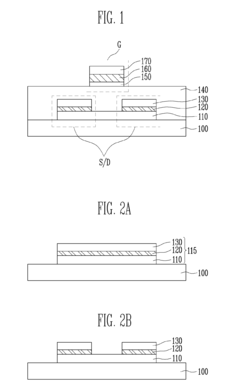 The development of suitable electrode and dielectric materials is essential for transparent transistor performance. Transparent conductive oxides like indium tin oxide (ITO) and aluminum-doped zinc oxide (AZO) are commonly used as electrode materials. High-quality transparent dielectric materials such as aluminum oxide, silicon dioxide, and hafnium oxide provide effective gate insulation while maintaining optical transparency. The selection and optimization of these materials significantly impact the transistor's electrical characteristics and overall transparency.Expand Specific Solutions05 Performance optimization and circuit design for transparent transistors