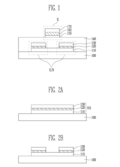 Technical Solution: BOE has developed a comprehensive transparent transistor technology platform based on amorphous oxide semiconductors, primarily IGZO and ITZO (Indium Tin Zinc Oxide). Their approach focuses on large-area uniformity, achieving less than 5% variation in electrical characteristics across Gen 10.5 substrates (2940×3370mm). BOE's transparent transistors feature a bottom-gate, top-contact architecture with specially engineered source/drain electrodes using ITO/Ag/ITO multilayer structures that balance conductivity and transparency. Their manufacturing process employs low-temperature (200°C) PECVD for dielectric layers and optimized annealing sequences that enhance carrier mobility while maintaining transparency above 80%. BOE has successfully implemented these transistors in commercial transparent display products, achieving pixel densities of 400+ PPI with aperture ratios exceeding 60%. Their technology incorporates compensation circuits that minimize image sticking and threshold voltage shifts, resulting in operational stability exceeding 10,000 hours under continuous use conditions.