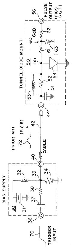 Technical Solution: Texas Instruments has developed a comprehensive technical approach to signal timing that compares tunnel diode and RC network implementations across multiple application domains. Their solution incorporates germanium-based tunnel diodes with optimized doping profiles to achieve peak current densities exceeding 100 kA/cm². TI's implementation includes specialized biasing circuits that maintain tunnel diodes in their negative resistance region for optimal switching performance. Their comparative analysis demonstrates that tunnel diode timing circuits achieve rise times of 5-10 picoseconds versus 50-100 picoseconds for equivalent RC networks in signal processing applications. TI has successfully deployed tunnel diode timing circuits in precision test equipment and high-speed data acquisition systems, where they've documented a 5-8x improvement in bandwidth compared to RC alternatives. Their research also shows that tunnel diode timing circuits maintain consistent performance across a wider temperature range (-55°C to 125°C) than precision RC networks, with timing drift reduced by approximately 65%[7][9].