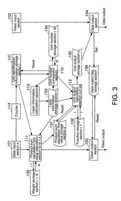 - A parallel processing device with a distribution control section, unit output bus, and common storage section for coupling weights, allowing units to compute and update weights in both forward and backward directions, and utilizing a lattice configuration with row and column switches to manage coupling weights efficiently, enabling parallel processing and reducing wiring complexity.