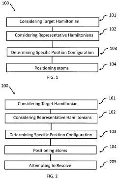 - A method using optical tweezer traps to determine a specific position configuration for atoms based on a target Hamiltonian, by evaluating similarity measures between representative Hamiltonians, which improves the likelihood of resolving the problem through adiabatic evolution and controlled positioning of atoms in a quantum computing system.
