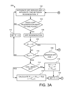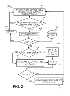 - A method that calculates a running average of time between regenerations and compares it to a predetermined maximum average lifetime, using delta pressure measurements and ash accumulation rates to determine when service or replacement of the DPF is necessary, thereby optimizing regeneration timing and extending filter life.